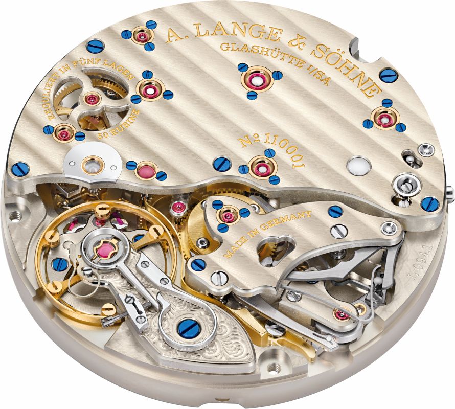 The watch is powered by the Calibre L094.1 with a seconds hand that makes a precise, single jump every second, rather than the multiple micro-steps typical of most mechanical watches. This clarity-oriented mechanism is quite rare in today’s watch industry and gives the watch model the name as we know it.