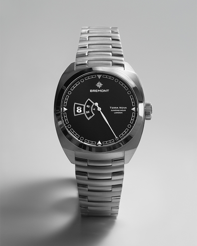 ดังนั้นเมื่อแบรนด์นาฬิกานักบิน Bremont จากประเทศอังกฤษเปิดตัว Terra Nova Jumping Hour เราจึงรู้สึกสะดุดตาเป็นพิเศษ นาฬิการุ่นนี้มีตัวเรือนสเตนเลสสตีลเกรด 904 แอล ขนาด 40.5 มม. และสวมใส่ด้วยสายเบรซเลทดีไซน์ที่ค่อนข้างมีเอกลักษณ์ที่ออกแบบมาเพื่อคอลเลคชั่น Terra Nova ซึ่งเน้นสำหรับการผจญภัยบนบกโดยเฉพาะ และออกแบบโดยมีนาฬิกาพกสไตล์ทหารยุคต้นศตวรรษที่ 20 เป็นแรงบันดาลใจ