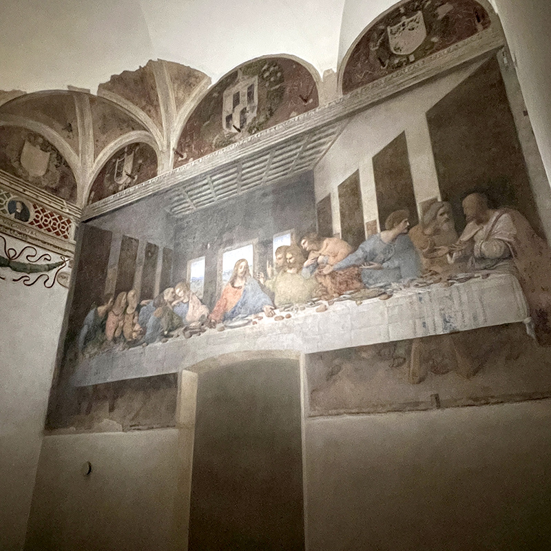 อีกหนึ่งมรดกทางวัฒนธรรมของมิลานที่ผมอยากเห็นด้วยตาตนเองก็คือภาพวาด The Last Supper ของลีโอนาร์โด ดาวินชี ซึ่งแม้จะผ่านการบูรณะมาหลายครั้งจนแทบไม่เหลืออะไรที่เป็นของดั้งเดิมแต่ก็ยังคงมีคุณค่าทางประวัติศาสตร์อยู่ดี ภาพวาด The Last Supper นี้อยู่บนผนังโรงอาหารของสำนักสงฆ์คณะโดมินิกัน ติดกับวัดซานตามารีอาเดลเลกราเซีย ปัจจุบันห้องที่มีภาพวาดนี้ได้รับการควบคุมอุณหภูมิและความชื้นอย่างจริงจังด้วยการใช้ประตูกั้นอากาศมากถึง 3 ชั้นก่อนที่เราจะเข้าถึงตัวห้องจริง ทั้งยังมีการจำกัดจำนวนผู้เช้าชมในแต่ละรอบ และมีการกำหนดเวลาให้เข้าชมได้รอบละ 15 นาที
