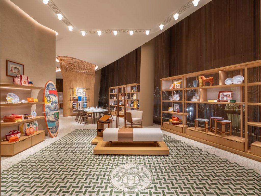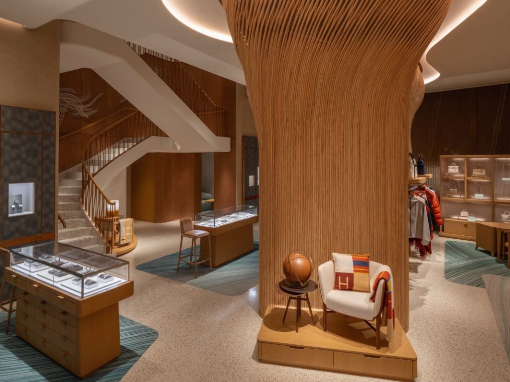 บูติค Hermès แห่งนี้ได้รับการออกแบบโดย RDAI บริษัทออกแบบสถาปัตยกรรมจากปารีสที่ต้องการถ่ายทอดเรื่องราวในมุมมองใหม่ที่สะท้อนความมุ่งมั่นของ Hermès ต่อการสร้างสรรค์งานฝีมือและงานศิลป์ด้วยการผสมผสานจิตวิญญาณแบรนด์เข้ากับงานฝีมือช่างท้องถิ่น อาทิ เสาหวายและพรมภายในร้านที่สั่งทำพิเศษด้วยฝีมือของดีไซเนอร์และช่างฝีมือท้องถิ่น