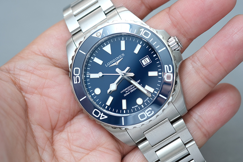 สำหรับ Longines นั้นก็มีนาฬิกาดำน้ำรูปแบบต่างๆ มาตั้งแต่ปี ค.ศ. 1958 และในยุคสมัยปัจจุบันก็มีคอลเลคชั่นนาฬิกาดำน้ำระดับความลึก 300 เมตรในชื่อ HydroConquest ตั้งแต่ปี ค.ศ. 2007 ซึ่งในช่วงเริ่มแรกนั้นเราเองก็ยังไม่ได้ให้ความสนใจอะไรกับคอลเลคชั่นนี้มากนัก จนกระทั่งมีการรีเฟรชครั้งใหญ่เป็น HydroConquest เจนเนอเรชั่นที่ 2 ในปี ค.ศ. 2018 ซึ่งมาพร้อมกับวงแหวนขอบตัวเรือนวัสดุเซรามิกในราคาเรือนละไม่ถึง 60,000 บาท ดังนั้นเมื่อคำนึงถึงชื่อชั้นหรือภาพลักษณ์ของแบรนด์และปัจจัยอื่นๆ ประกอบแล้วจึงทำให้ HydroConquest เป็นนาฬิกาดำน้ำสวิสที่น่าสนใจที่สุดในระดับราคา 50,001-100,000 บาทไปโดยปริยาย
