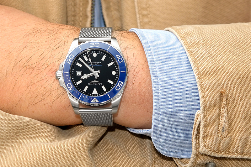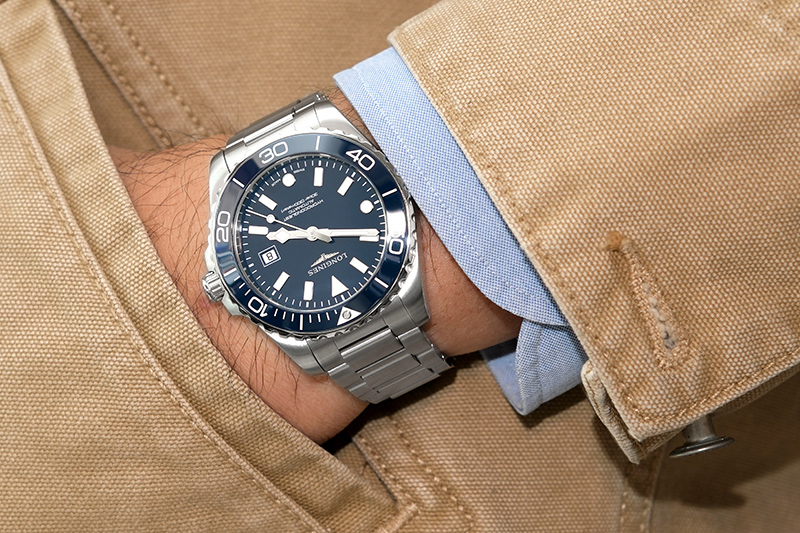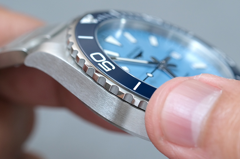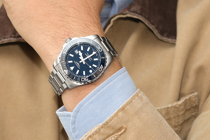 The three colourways shown were chosen for specific reasons: the black dial with luminous blue bezel on a mesh bracelet is the hero model used by Longines for their global promotion; the dark blue dial with dark blue bezel on a standard bracelet is likely to be the most practical for long-term daily wear and carries a stronger Longines identity than the black one; and, the frosted blue sunray dial with dark blue bezel on a standard bracelet, available exclusively through corporate boutiques, offers the much needed variety for those who already own black or dark blue dial diving watches.
