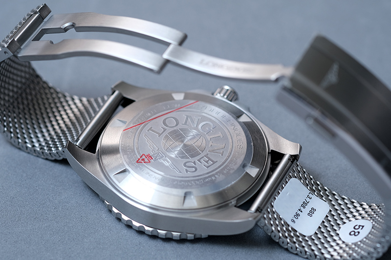 This year, Longines continues to uphold that value proposition with the launch of the third generation HydroConquest, introduced simultaneously in two sizes of 39 mm and 42 mm to suit different preferences. They are priced identically at THB 72,200 if on the standard bracelet and THB 76,100 if on the mesh bracelet. Both bracelet types feature a folding clasp with dual push-button release on either side, along with a concealed 4-step micro-adjustment system. The latter allows the wearer to fine tune the fit to achieve an even more snug fit than with a half link, or to extend the bracelet slightly for added comfort in warmer conditions as needed.