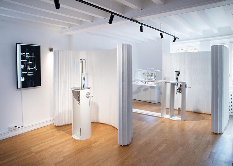 Together, through this partnership, four international students collaborated with the artisans of Sainte-Croix and brought to life five interactive, mechanical installations that combine visual and sound effects. Visitors to this recent exhibition in Geneva could activate each and every one of them simply by turning a crank.