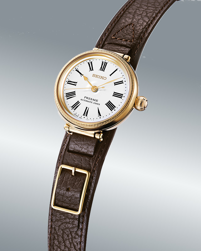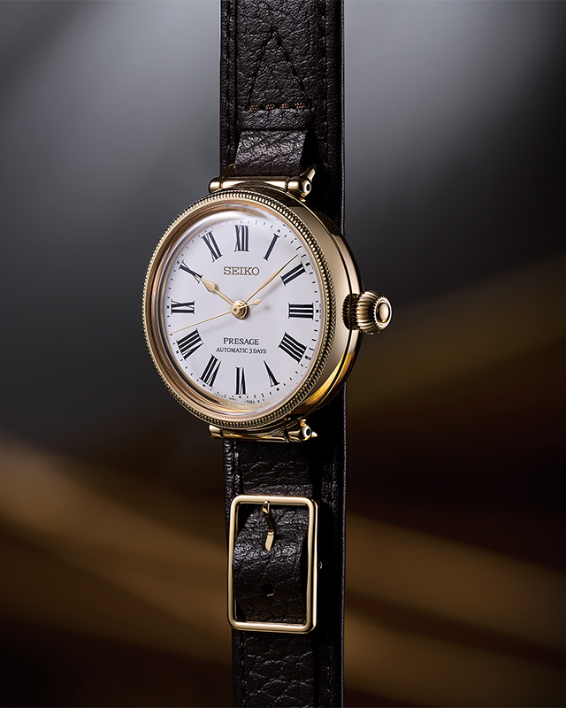 The remaining two models differ markedly in design. The Presage Classic Series “Craftsmanship” Enamel Dial, reference SPB538, limited to 1,450 pieces, delivers an unmistakable vintage character, drawing inspiration from Seiko’s historic Timekeeper pocket watch. This influence is evident in the black Roman numerals and gold-coloured slender hands that are set against a white enamel dial. The 35 mm stainless steel case is gold-coloured and features a distinctive onion-shaped crown. It is worn on a specially designed leather strap with a one-piece, bracelet-like form. Beating inside is the self-winding Calibre 6R51, offering a generous 72-hour power reserve.