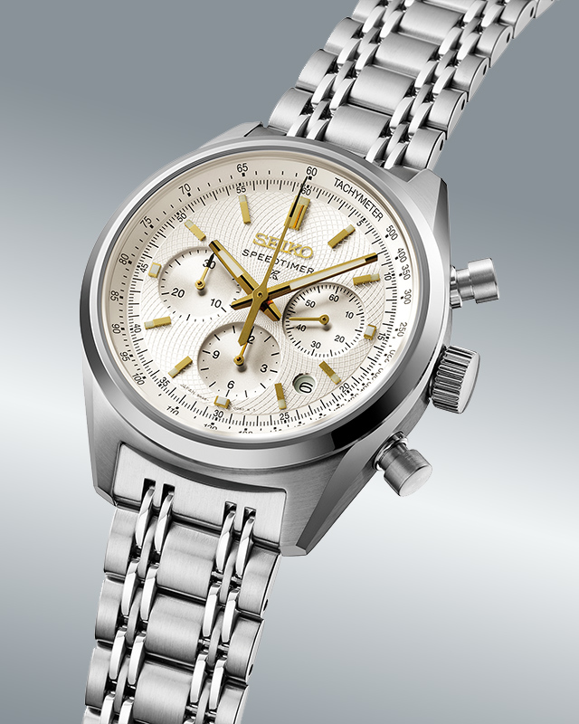 The first of these is the King Seiko KS1969, reference SJE121, limited to 800 pieces. It features a gradient dial that transitions from dark grey to black, contrasted by gold-coloured hour markers and hands. The watch is powered by the self-winding Calibre 6L35, offering a power reserve of 45 hours, and is housed in a 39.4 mm stainless steel case. The second model is the Prospex Speedtimer Mechanical Chronograph, reference SRQ059, limited to 700 pieces. This one has a white dial and is driven by the self-winding Calibre 8R48, also with a 45-hour power reserve, within a 42 mm stainless steel case.