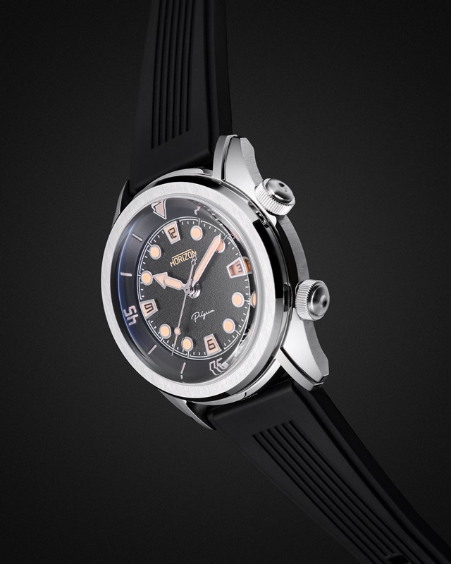 สำหรับแบรนด์ที่เราอยากดู อยากสัมผัสและทาบบนข้อมือเป็นพิเศษก็คือแบรนด์สัญชาติสิงคโปร์ 2 แบรนด์ ได้แก่ Horizon ซึ่งมีนาฬิกาดำน้ำรุ่น Nemo ที่เราเห็นรูปมาหลายครั้งแล้วแต่ยังไม่เคยเจอเรือนจริง โดยที่ Horizon นี้ก่อตั้งโดยคุณเฟรด เบเคอร์ ดีไซเนอร์จากยูเครน ร่วมกับพาร์ทเนอร์ที่สิงคโปร์ซึ่งก็คือคุณซูกิฮาร์โตแห่ง Red Army Watches เอง ปัจจุบัน Horizon เพิ่งจะมีนาฬิกาเพียงแค่ 3 รุ่นและเป็นแนวดำน้ำทั้งหมด แต่ดูจากชื่อแบรนด์เราเชื่อว่าในอนาคตก็ต้องมีการเพิ่มนาฬิกาแนวสปอร์ตเพื่อการผจญภัยบนบกและบนฟ้าต่อไป