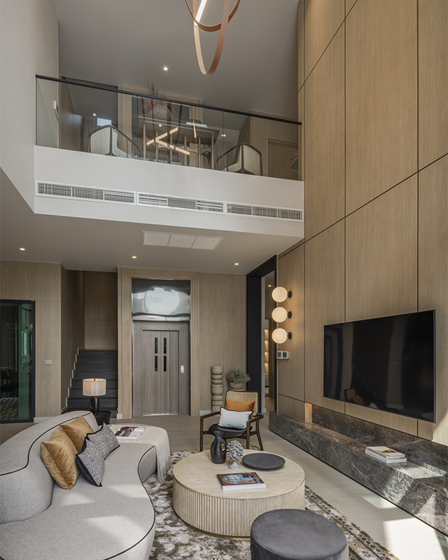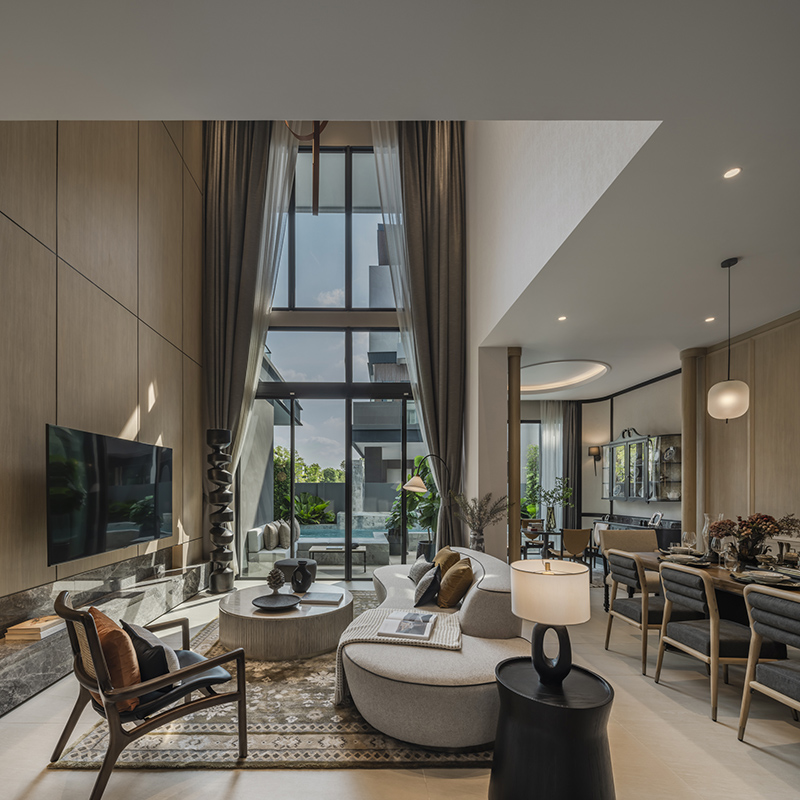All images featured in this article are of the medium-sized home model called Privileged Pride. It’s clear that AssetWise has leveraged its 18 years of experience to design and optimize the layout of the house for maximum practicality. Inside, you will find five bedrooms, seven bathrooms, a double-volume living room, a family room, and two multi-purpose rooms that can be converted into an office, library, prayer room, home theater, or even a pet room, depending on your needs. The home is fitted with an elevator for the convenience of elderly residents or those using wheelchairs. AssetWise is also thoughtful to design the maid’s room with an en suite bathroom and a separated entrance, ensuring the privacy and convenience for all. And like the two other home models, Privileged Pride has a swimming pool on the side facing the living room, plus parking space for four cars on a single row.