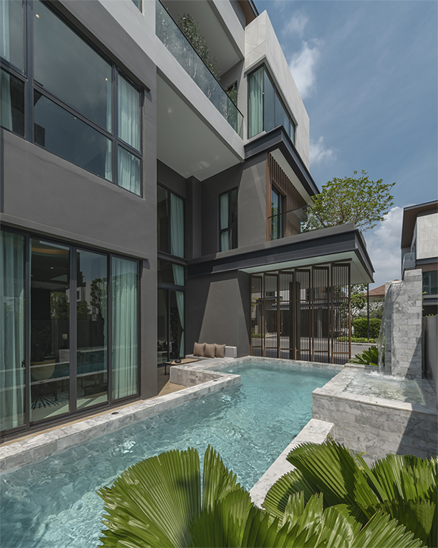 Located on 38 rai of land, The Honor Yothinpattana features 106 units of three-story, modern-style detached houses, each featuring a private pool on plots ranging from 60 to 175 square wah. The homes come in three design options, offering living spaces of 455, 564, or 710 square meters. The community is equipped with a full range of shared amenities. These include two clubhouses covering a total of 2,000 square meters (The Social Club for welcoming external guests and The Residential Club exclusively for residents) and the 1-rai Honor Park, which runs throughout the project, providing a green and serene environment.