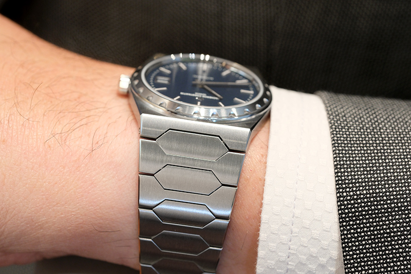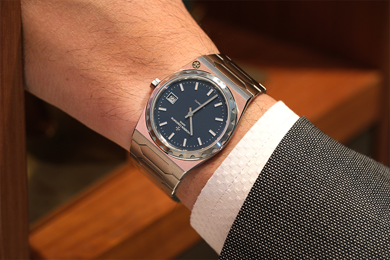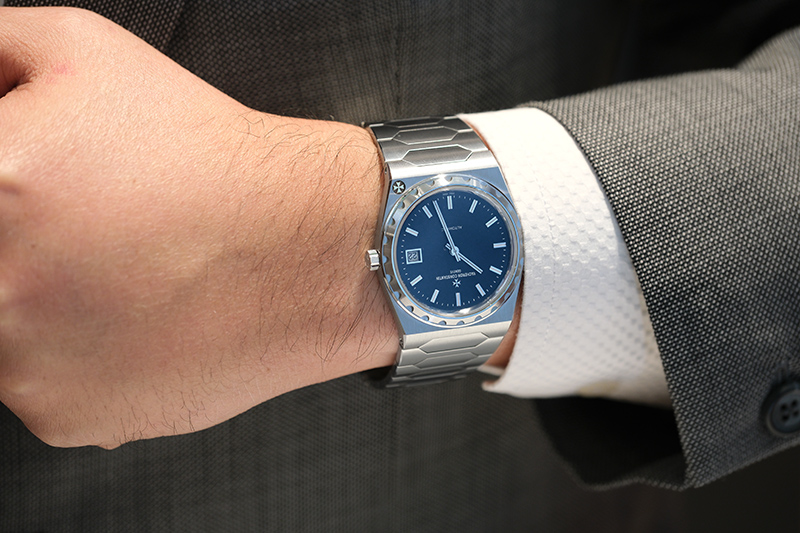ผู้เขียนเป็นคนไม่ชอบนาฬิกาเรือนเล็ก ปกติใส่นาฬิกาขนาด 40-42 มม. เป็นหลัก มีนาฬิกาขนาด 38 มม. แค่ 2-3 เรือน และไม่มีนาฬิกาที่เล็กกว่านั้นเลย แต่เมื่อปี ค.ศ. 2022 ตอนที่ได้ลองนาฬิกา Historiques 222 เวอร์ชั่นเยลโลว์โกลด์ที่งาน Watches and Wonders Geneva ก็รู้สึกว่าเล็กกว่านาฬิกาที่ใส่อยู่ทุกวัน แต่ก็รับกับข้อมือพอดี ไม่ได้ดูเล็กจนรู้สึกว่าไม่อยากใส่ โดยรวมขอกล่าวว่าเหมาะสมกับดีไซน์และยุคที่มาของรุ่นดั้งเดิม มาในครั้งนี้เมื่อได้สัมผัสกับรุ่นสเตนเลสสตีลก็ยังคงรู้สึกว่าโอเคเช่นกัน เพราะแม้ตัวเลขสเปคจะระบุว่าตัวเรือนมีขนาด 37 มม. แต่ด้วยรูปทรงของตัวเรือนสไตล์ที่ Vacheron Constantin เรียกว่าแฟลทเทเบิลแล้วเมื่อใส่จริงจะได้ฟีลเหมือน 39 มม. มากกว่า และเมื่อผลิตตัวเรือนและสายด้วยสเตนเลสสตีลจึงมีน้ำหนักเบากว่ารุ่นเยลโลว์โกลด์ของปี ค.ศ. 2022 ประมาณหนึ่งด้วย