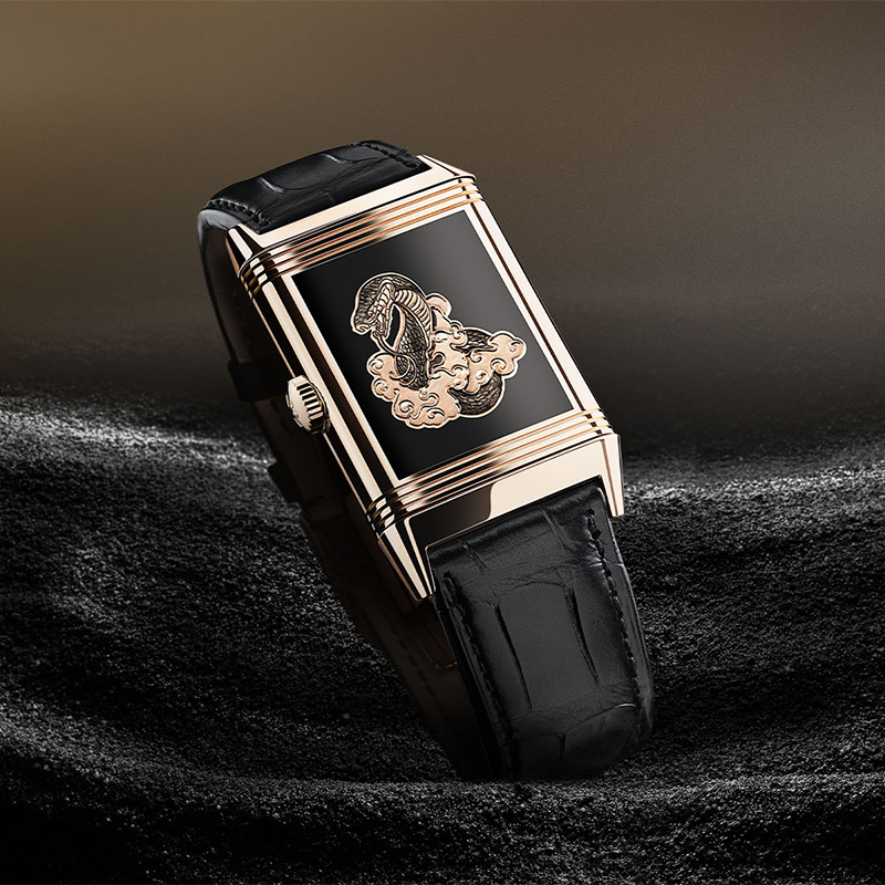 Jaeger-LeCoultre ร่วมฉลองปีนักษัตรเป็นครั้งที่ 3 ต่อเนื่องจากปีเสือและปีมังกร นี่คือ Reverso Tribute Enamel “Snake” ซึ่งเมื่อมองจากทางด้านหน้าจะเห็นเพียงหน้าปัดสีดำที่เรียบเกลี้ยงและมันเงาด้วยเทคนิคกร็องเฟอเอนาเมล แต่เมื่อพลิกมาทางด้านหลังจะพบกับการแกะสลักลวดลายรูปงูอันซับซ้อนอยู่กลางพื้นหลังที่เป็นกร็องเฟอเอนาเมลสีดำเหมือนกับหน้าปัด ความพิเศษนี้เกิดขึ้นได้ด้วยฝีมือของช่างแห่งเวิร์คช็อป Métiers Rares ภายในโรงงานของ Jaeger-LeCoultre ซึ่งมีความเชี่ยวชาญในเทคนิคงานศิลป์ต่างๆ กัน ทั้งนี้ Jaeger-LeCoultre จะผลิตนาฬิกา Reverso รุ่นพิเศษนี้เป็นจำนวนจำกัดเมื่อมีคำสั่งซื้อเท่านั้นโดยที่ไม่ได้กำหนดจำนวนที่แน่ชัดแต่อย่างใด